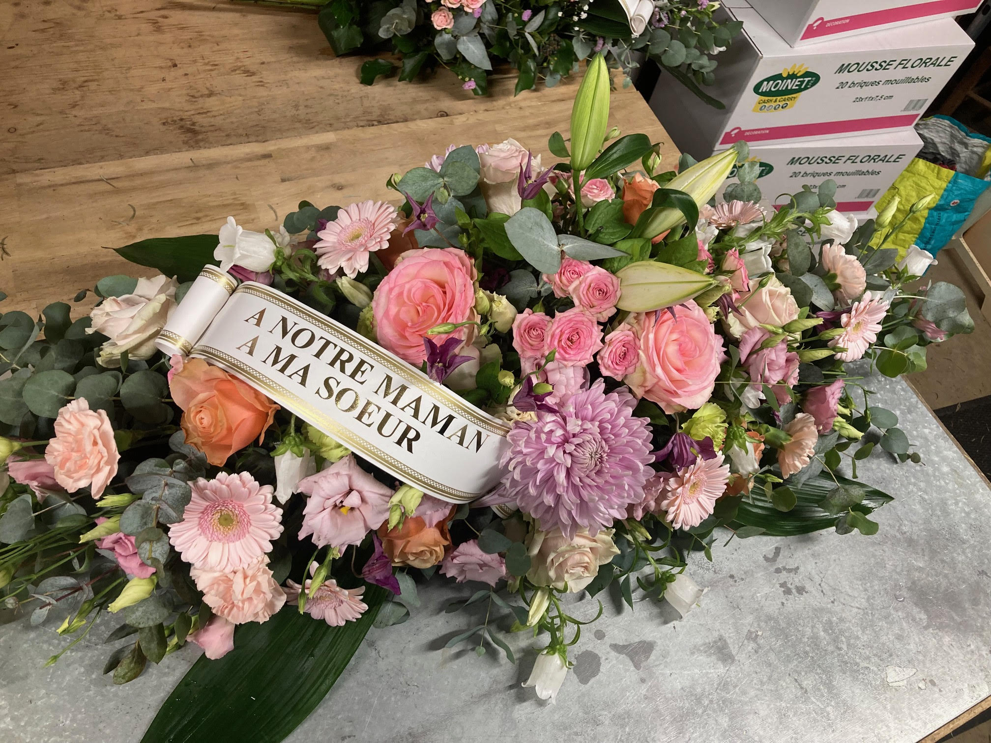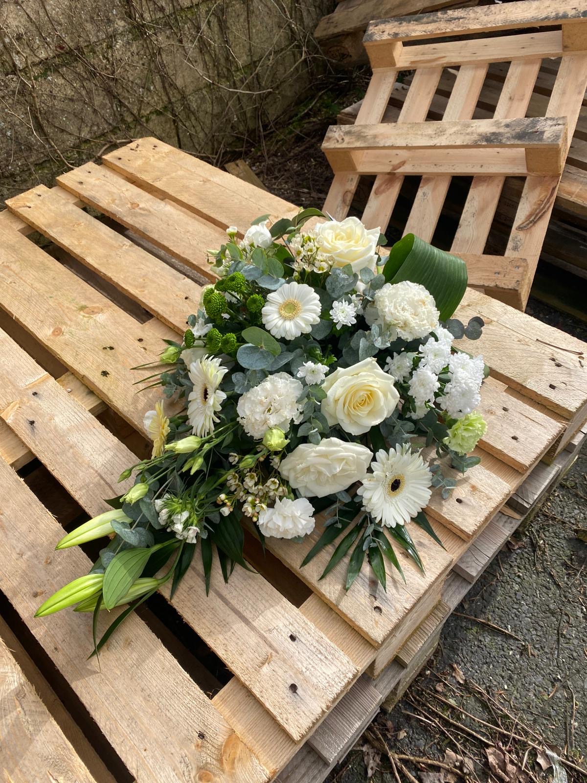 Indiquez vos besoins et souhaits floraux ; nous préparons en boutique une proposition personnalisée, pour alléger la charge émotionnelle.